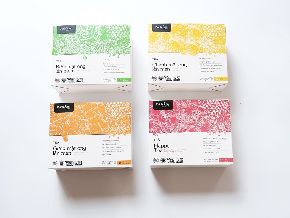Trà thảo dược lên men Dalahouse áp dụng công nghệ lên men nội sinh (theo luật bảo hộ sở hữu trí tuệ (SHTT) và bản quyền tác giả công nghệ số: 3433/2020/QTG và 3381/2020/QTG). Công nghệ này giúp gia tăng hàm lượng hoạt chất chống oxy hóa tự nhiên có trong củ gừng, quả chanh và bưởi sinh thái, được thu từ vùng núi Ngọc Linh và giúp tăng khả năng hấp thu lên gấp nhiều lần so với trước khi lên men